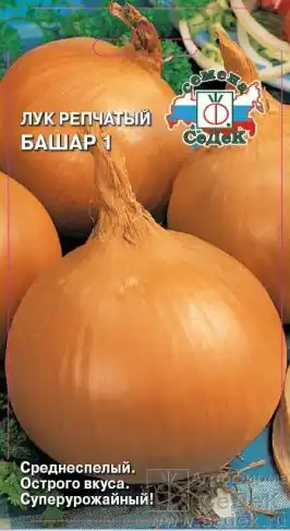 Цибуля ріпчаста Башар, Це сорт середнього терміну стиглості. Форма цибулини округла, маса коливається від 96 до 118 г. Поверхневі, сухі луски пофарбовані в коричнево-жовтий відтінок, внутрішні, соковиті мають біле забарвлення. Смак соковитих платівок сорту напівгострий. Максимальна врожайність відзначено у Волгоградській області, вона становила 1387 центнерів з гектара, середня врожайність дорівнює 350-400 центнерів з гектара. Дозрівання цибулин після дозарювання повна або близька до повної. Рекомендований для вирощування в Центрально-Чорноземному, Північно-Кавказькому та Нижньоволзькому регіонах.