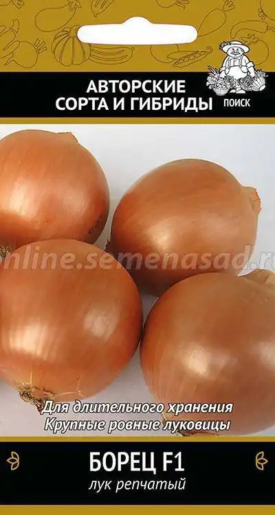 Цибуля ріпчаста Борець F1, це гібрид середнього терміну стиглості Форма цибулини широкоеліптична, максимальна маса становить 128 г. Покривні луски мають темно-коричневе забарвлення, а внутрішні - біло-зелене. Висохлих лусок налічується три або чотири штуки. Смак соковитих лусок гострий. Максимальна врожайність із гектара становить близько 688 центнерів. Дозрівання після дозарювання повна. Рекомендований для вирощування у Центральному та Північно-Кавказькому регіонах.