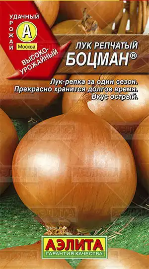 Цибуля ріпчаста Боцмансорт середнього терміну стиглості. Цибулини округлої форми, досягають маси в 89 р. Покривні луски зазвичай коричневого забарвлення, а внутрішні - білосніжної. Висохлих лусочок налічується до п'яти штук. Максимальна врожайність із гектара сягає 760 центнерів. Після дозарювання сорту визріваність становить 91-92%. Рекомендований для вирощування у Центральному регіоні.