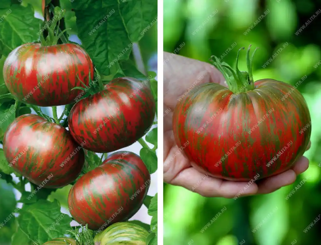 Унікальний сорт, який також сподобався нашим клієнтам не лише за незабутній смак, а й за надзвичайне фарбування плодів. Наші дачники відзначили, що цей томат став справжньою окрасою теплиць та грядок! І при цьому, Амурський тигр – найсолодший зі смугастих томатів. Сорт середньоранній, підходить для вирощування у плівкових теплицях та у відкритому ґрунті. Період від сходів на початок плодоношення 108-112 днів. Рослини індетермінантні, висотою 1,5-2 м. У кожному пензлі зав'язується 4-5 вирівняних за розміром і формою томатів, однакових як на нижніх, так і на верхніх ярусах, масою 150-200 г, а окремі плоди можуть досягати маси в 300-400 г. сахорокислотним співвідношенням. М'якуш соковитий, щільний, не водянистий. При консервуванні смугасте забарвлення плодів добре зберігається. Наші клієнти надіслали нам масу позитивних відгуків про цей сорт, особливо відзначаючи не тільки прекрасний смак та оригінальний вигляд, а й високу (від 12 кг з метра квадратного!) врожайність та стійкість до хвороб цього томату, а літо 2017 року дозволило виявитись найкращим якостям цього сорту в екстремальних погодних умовах. Обов'язково посадіть томат Амурський тигр наступного дачного сезону, і ви не зможете в майбутньому від нього відмовитися!