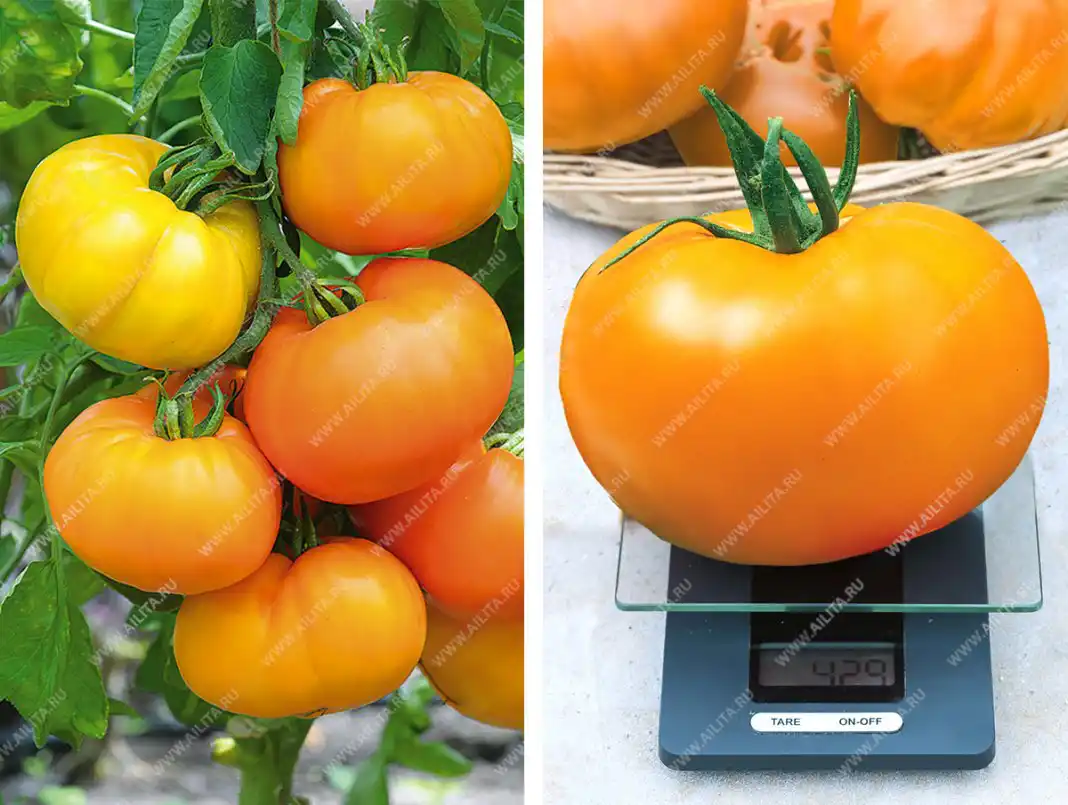 Томат Медовий гігант - Лідер у любителів великоплідних жовтих томатів і справжнє джерело прекрасних якостей, які, по безлічі позитивних відгуків наших дачників, виявилися і в умовах холодного літа.