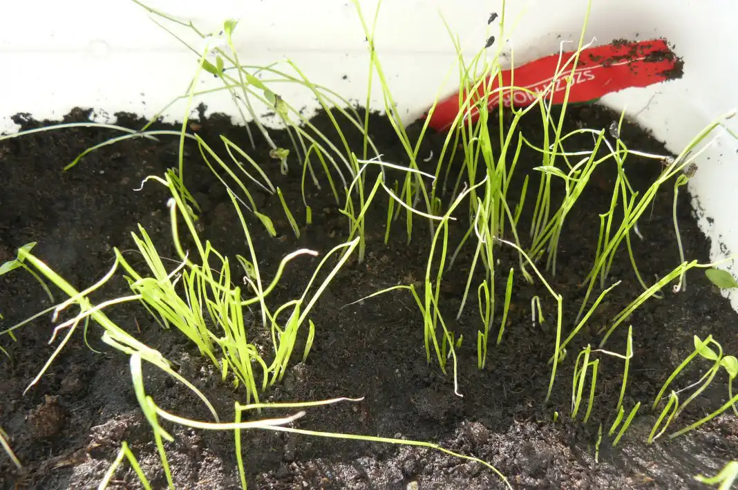 Сходи з'являються на 7-10 день. У разі мають ряд ряд грунт обов'язково рихлять для збільшення доступу кисню до коренів рослин. Після сформування 1 цього листа рослини проріджують, залишаючи по 1 рослині на 10-12 см. Ті, що залишилися від вибірки, можна окремо висадити як розсаду.