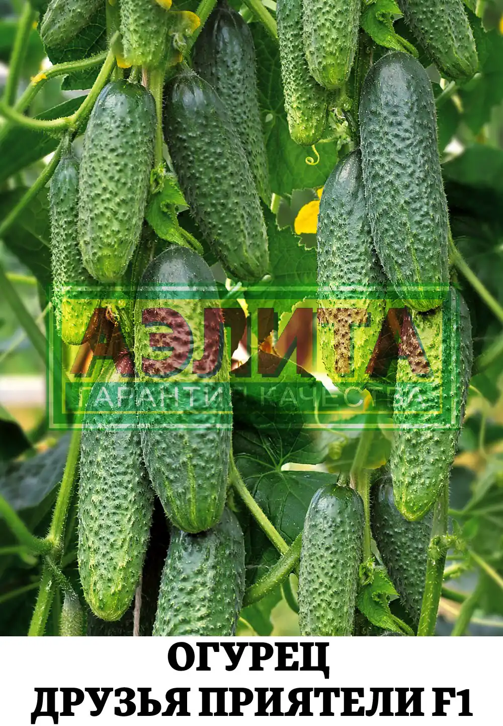 Огірок «Друзі-приятелі» - Гібрид з пучковим типом плодоношення, з надвисоким потенціалом врожайності. Завдяки багаторічній селекційній роботі даний гібрид характеризується здатністю формувати сильно розвинену кореневу систему і отримувати максимальну кількість поживних речовин у період вегетації. Тому майже всі огірки в пучку визрівають, що забезпечує отримання величезного врожаю (до 20 кг/м2). Зеленці невеликі, не переростають, прекрасного товарного вигляду без гіркоти та порожнеч. Огірок «Друзі приятелі» завоював популярність у дачників, а й у великих виробників товарної продукції, оскільки за своїми характеристиками значно перевищує основні відомі голландські гібриди.