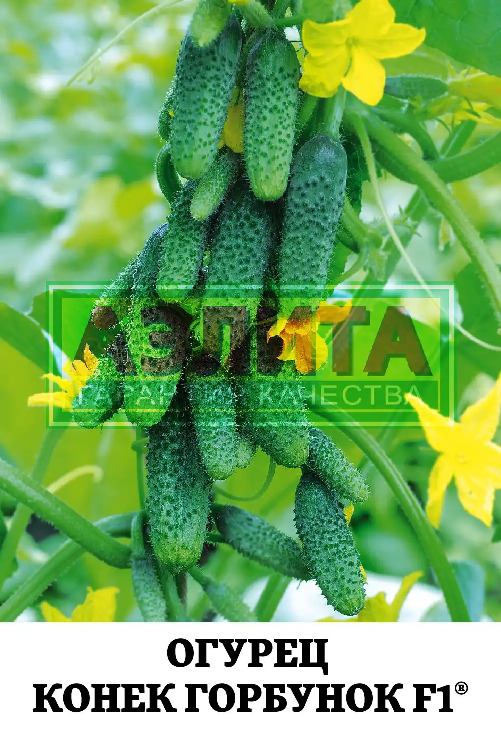 Багато дачників вже познайомилися зі скоростиглим партенокарпічним гібридом корнішонного типу «Коник Горбунок». У вузлах кожної рослини формується не менше 8 зав'язей, які при правильному формуванні поступово дозрівають, утворюючи гірлянду з апетитних огірків. Зеленці короткі, з тонкою шкіркою, без гіркоти. Рекомендуються для споживання у свіжому вигляді та консервування. Огірок «Коник Горбунок» має тривалий період плодоношення і радуватиме вас урожаєм із червня до вересня. Він чудово показав себе у різних кліматичних регіонах, стійкий до різкої зміни погодних умов. Сподобався «Коник Горбунок» та городянам, які, використовуючи його, отримують багатий урожай огірків на балконі.
