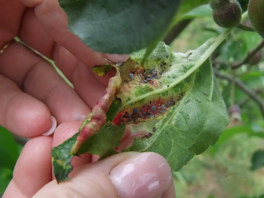 Отже, постараємося розібратися з кожною проблемою скручування листя на яблуні окремо і почнемо з червоногалової попелиці.