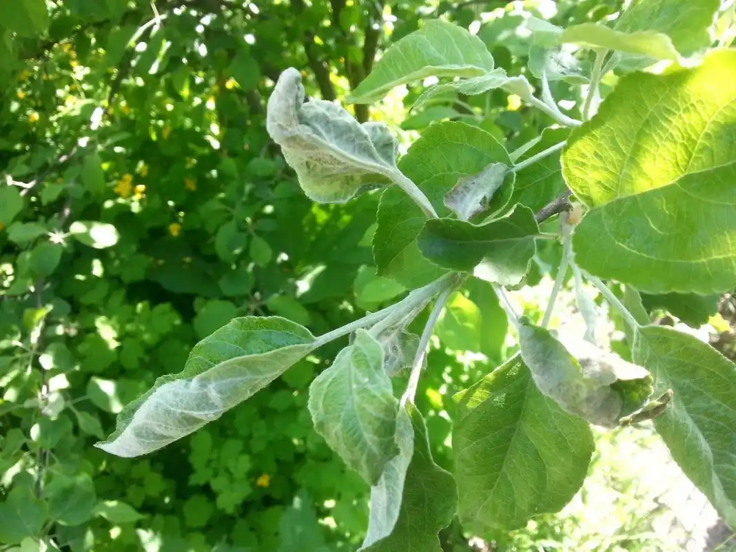 Борошниста роса призводить до скручування листя не тільки на овочевих культурах, а й на яблуні теж. Щоб виявити наявність борошнистої роси на яблуні, необхідно якнайретельніше оглянути її листочки, особливо листочки молоді, тому що саме там часто борошниста роса і поселяється: крізь молоді тканини листа проникнути їй, мабуть, простіше, та й живлющого соку там більше.