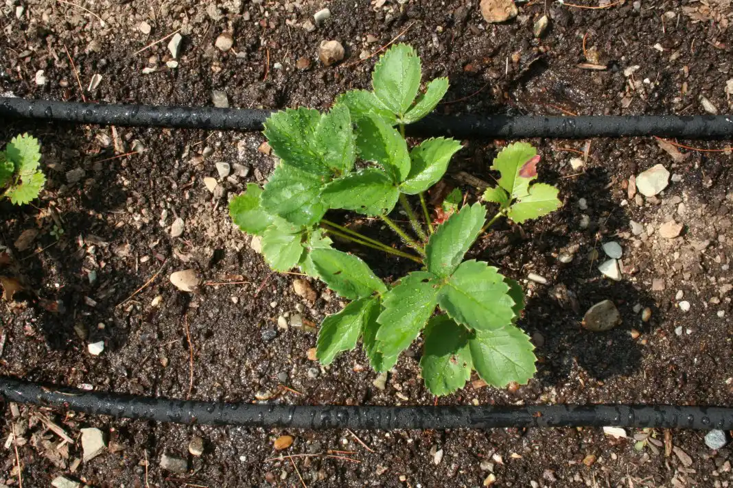 Якщо ви мешканець дачної ділянки, де буваєте лише у вихідні, то можна сконструювати просту систему крапельного поливу. Для цього потрібно взяти бочку на 200 літрів, встановити її на невелике піднесення, під потік дощу з даху, виконати в основі бочки пару-трійку отворів (за кількістю рядків на грядці) для спеціальних трубок - крапельниць і розкласти вздовж грядок із суницею. Волога, надходячи по крапельницях, зволожуватиме ґрунт у вашу відсутність, там, де це потрібно.