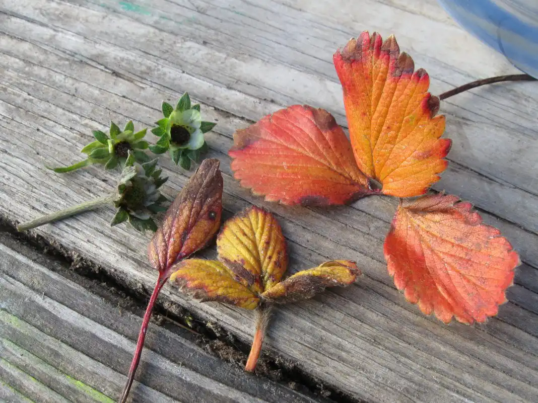Наступний етап: як відомо листові платівки суниці садової, відслуживши належні їм два роки, починають старіти, тому їх сміливо можна видалити. Роблять це по-різному: зчісують граблями, скошують і навіть вирізують вручну. Чіткого керівництва до таких дій немає, проте не забувайте, що при видаленні старих листових пластинок, що змінили свій колір, полуниці важливо не пошкодити точки зростання. З огляду на це вважаються найбільш щадними два методи – згрібання старих листочків граблями (вони легко відокремлюються) та видалення їх вручну.