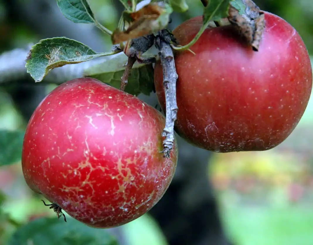 На початку формування плодів борошниста роса може з'явитися і на них, там можна також побачити білястий наліт, який, проте, досить швидко пропадає, залишаючи після себе іржаву сіточку, яка дуже нагадує тканину, як від граду чи інших механічних впливів на плід.