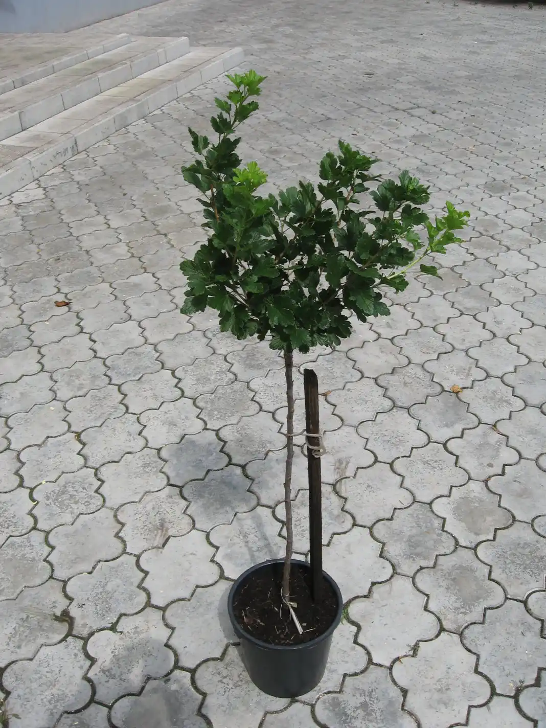 Коли вибрали таку втечу, решту безжально видаліть, вирізавши їх на рівні грунту. Після цього вам потрібно визначити, який висоти штамб буде у вашого майбутнього деревця. Відразу скажемо, що надмірно старатися не варто, аґрус — це все ж таки кущ (біологічно), тому штамб вище метра робити не варто, інакше поруч доведеться встановлювати потужні опори.