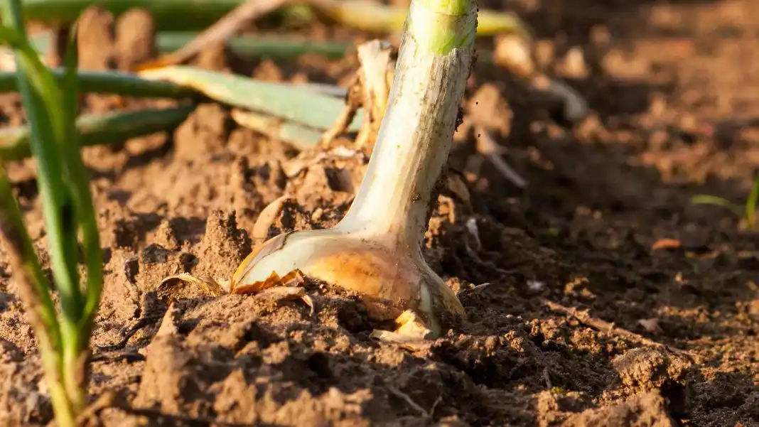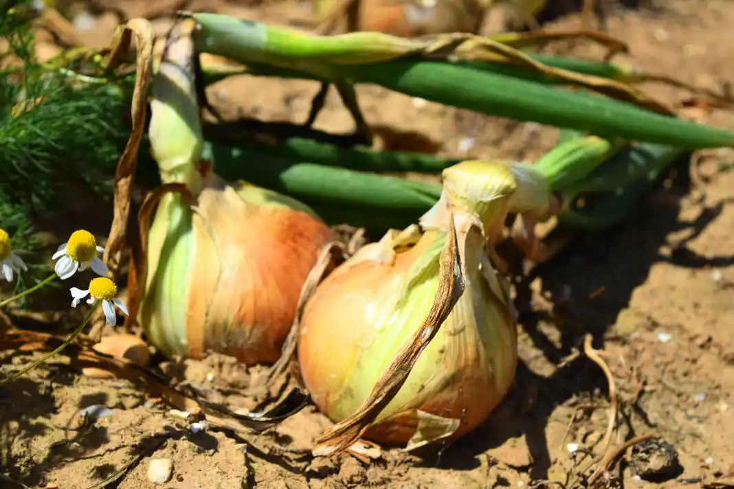 - За 2-3 тижні до збирання полив припиняють і акуратно «оголюють» плічка цибулин від землі. Процедура сприяє дозріванню цибулини, особливо стебла біля основи. Недозрілі стебла взимку уражаються грибково-бактеріальною гниллю.