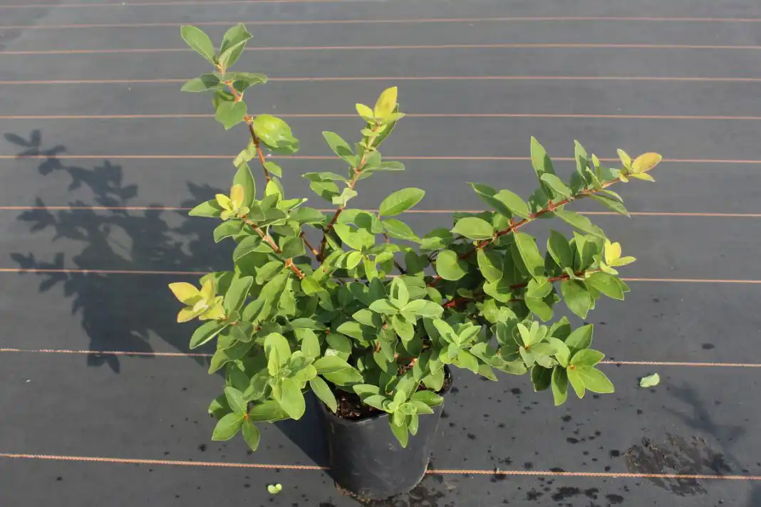 Молоді пагони жимолості опушені, місцями з синьо-фіолетовим відтінком. Старі стовбури покриті жовтувато-бурою корою, що легко відшаровується. Товщина старих гілок 3-4 див.