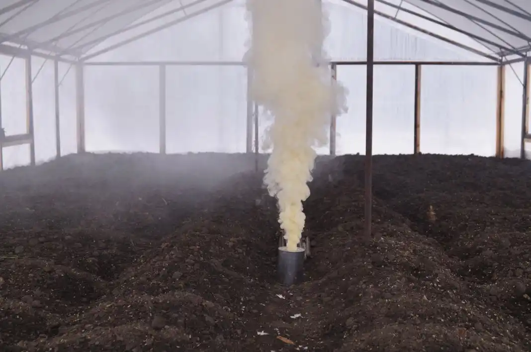 Обробки теплиці краще проводити ввечері, у безвітряну погоду, вживши всіх заходів захисту від отруйних речовин (окуляри, респіратор, халат, штани, чоботи, головний убір).