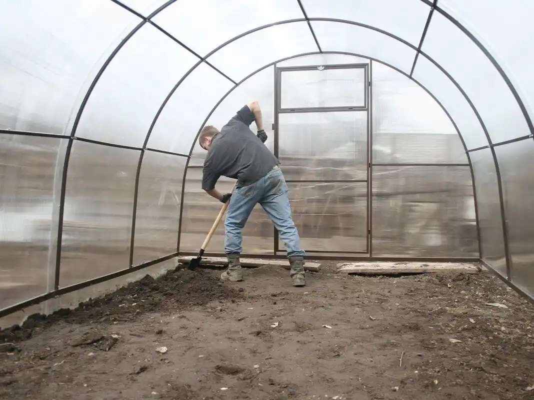 Необхідно прибрати з теплиці та навколишньої площі весь мотлох та інвентар. Вичистити, промити, скласти в прибудову, температура в якій в зимовий період дорівнюватиме вуличній (природне проморожування). Не забудьте і цю прибудову попередньо продезінфікувати.