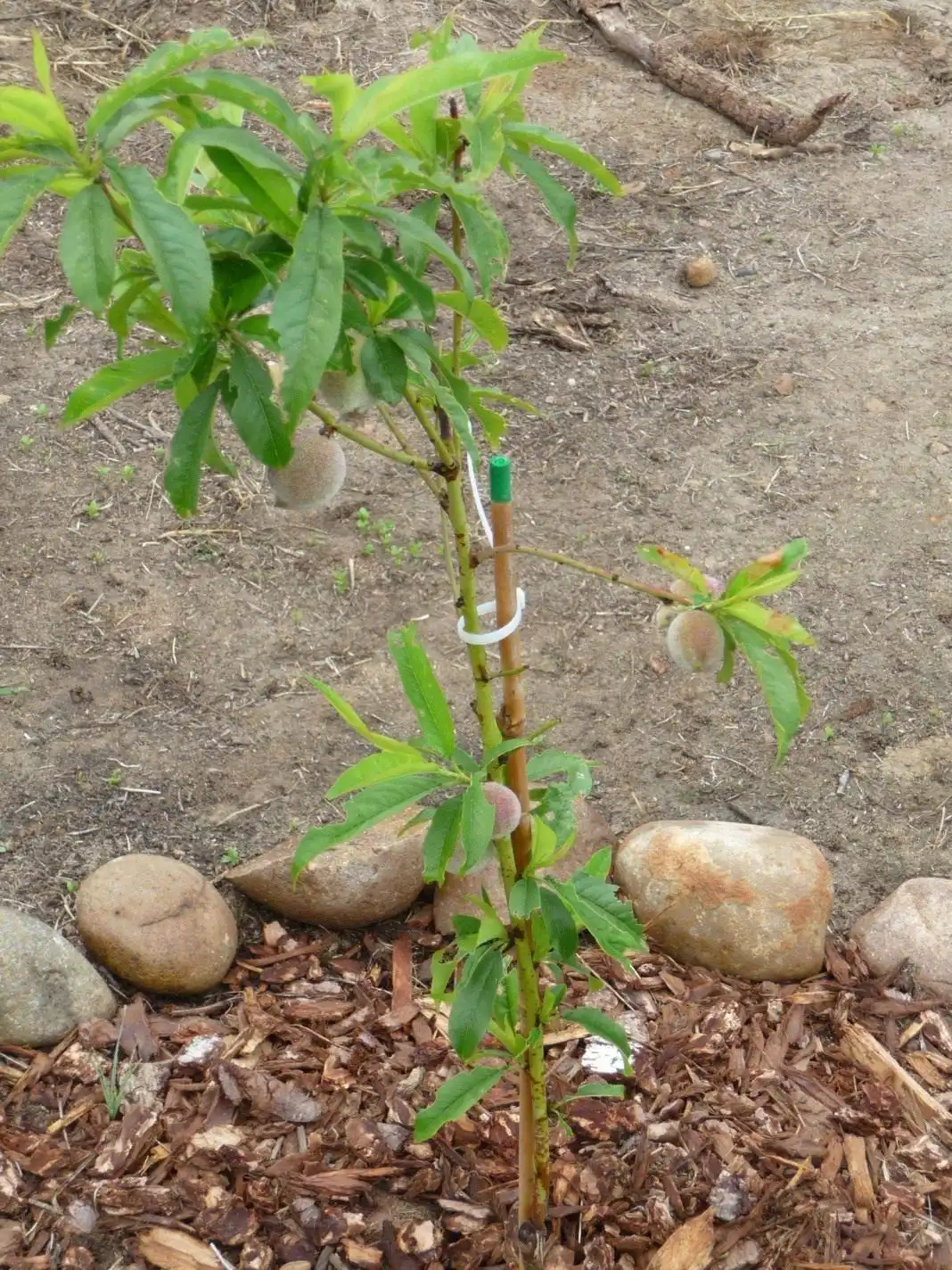 Високий відсоток приживання забезпечують 1 - 2-річні саджанці персика. Їх висота коливається від 1,0 до 1,5 метра, стволик в колі становить 1,5-2,0 см. На стовбурі та бічних пагонах кора має бути гладкою, однорідною, без камедієвих точок, які через 1-2 роки можуть повністю вразити рослину камедієвою хворобою.