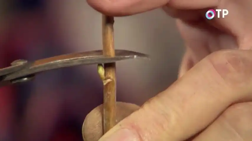 Потім під ниркою верхнього живця ми робимо інший зріз. Ось так, подивіться. Ось у нас вийшло 2 черешки.