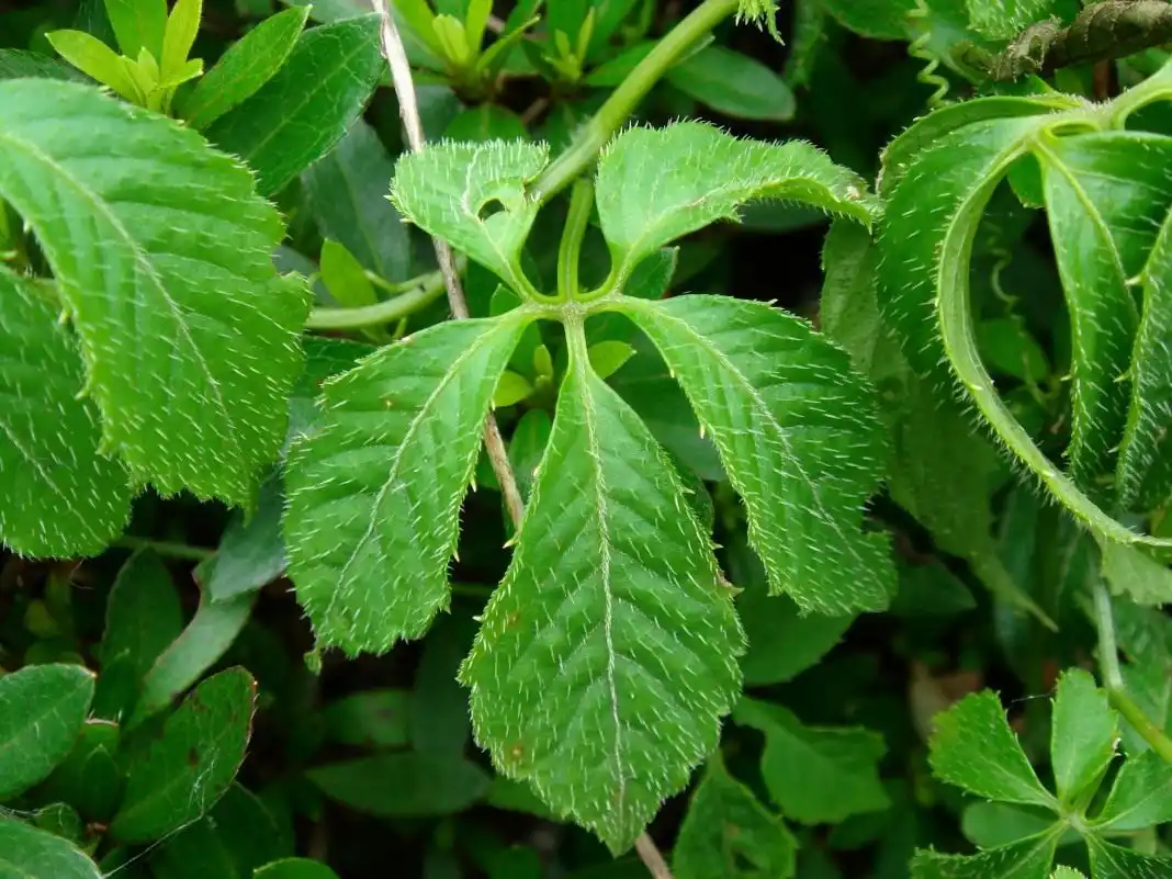 Надземна маса може бути ґрунтопокривною, чіплятися вусиками, формуючи вертикальні зелені стіни альтанок, куточків відпочинку в квартирах, зимових садах, оранжереях. У кімнатній культурі ніжним зеленим мереживом звисає із кашпо та ємностей, розташованих на підвіконнях та високих пристосуваннях. За вегетаційний період гіностемма виганяє батоги до 8 м, які можна постійно зрізати для свіжозавареного чаю, а на зиму підсушити достатню їх кількість для лікувальних напоїв, що бадьорять. Листя черешкове пальчасто-складне, складається з 5-7-9 окремих ланцетовидних листочків з дрібнозубчастими краями (нагадують листок дівочого винограду).