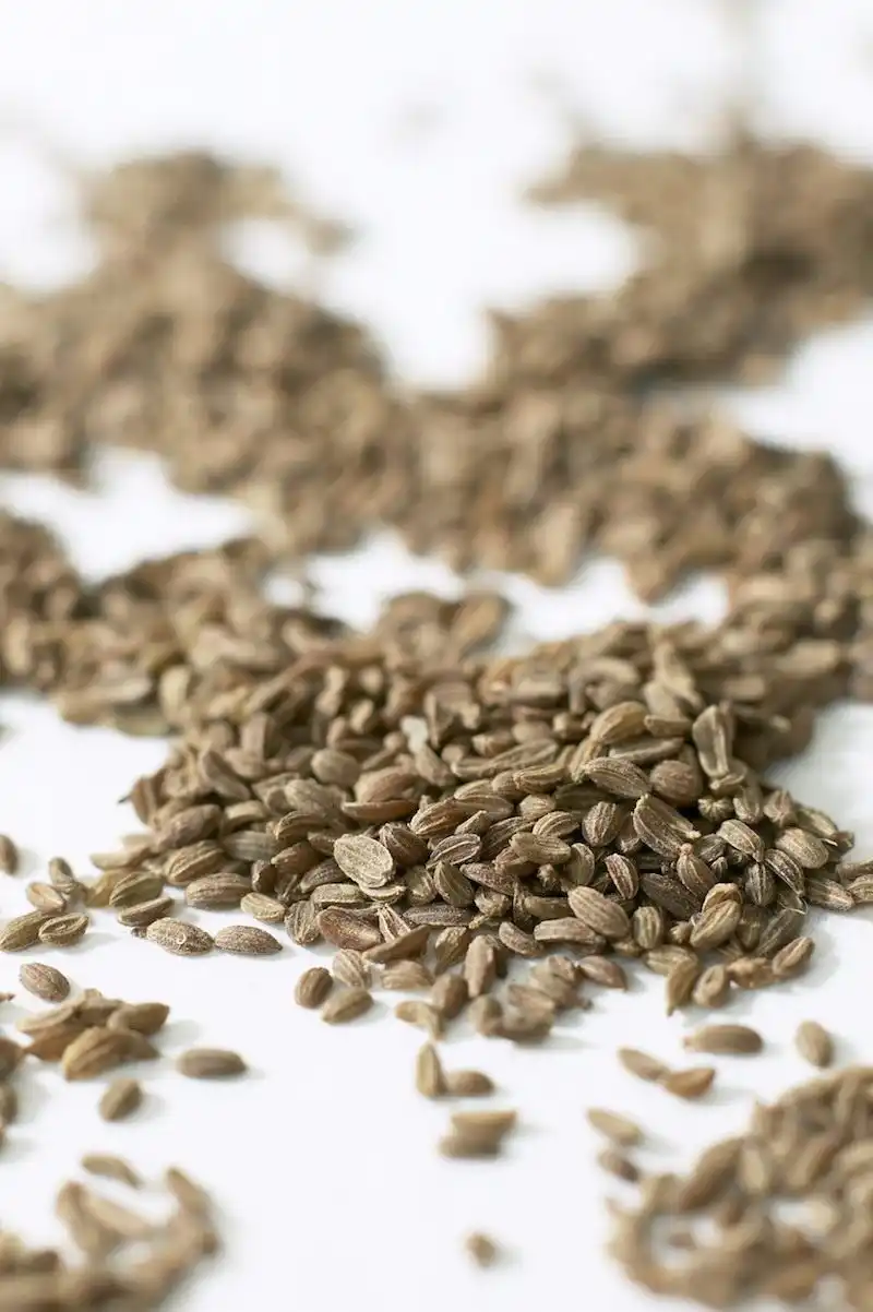 Поцвілі, що побуріли, зрізають, ув'язують у пухкий пучок, щоб не загнили, не заплісніли від грибкової інфекції, і досушують у підвішеному стані в марлевих мішках. Можна зрізані суцвіття розкласти на папері та дозарювати. Повністю дозрілі парасольки так і зберігають до весни або переминають і провіюванням відокремлюють насіння від сміття. Очищене насіння зберігають у полотняних мішечках у кімнатних умовах.
