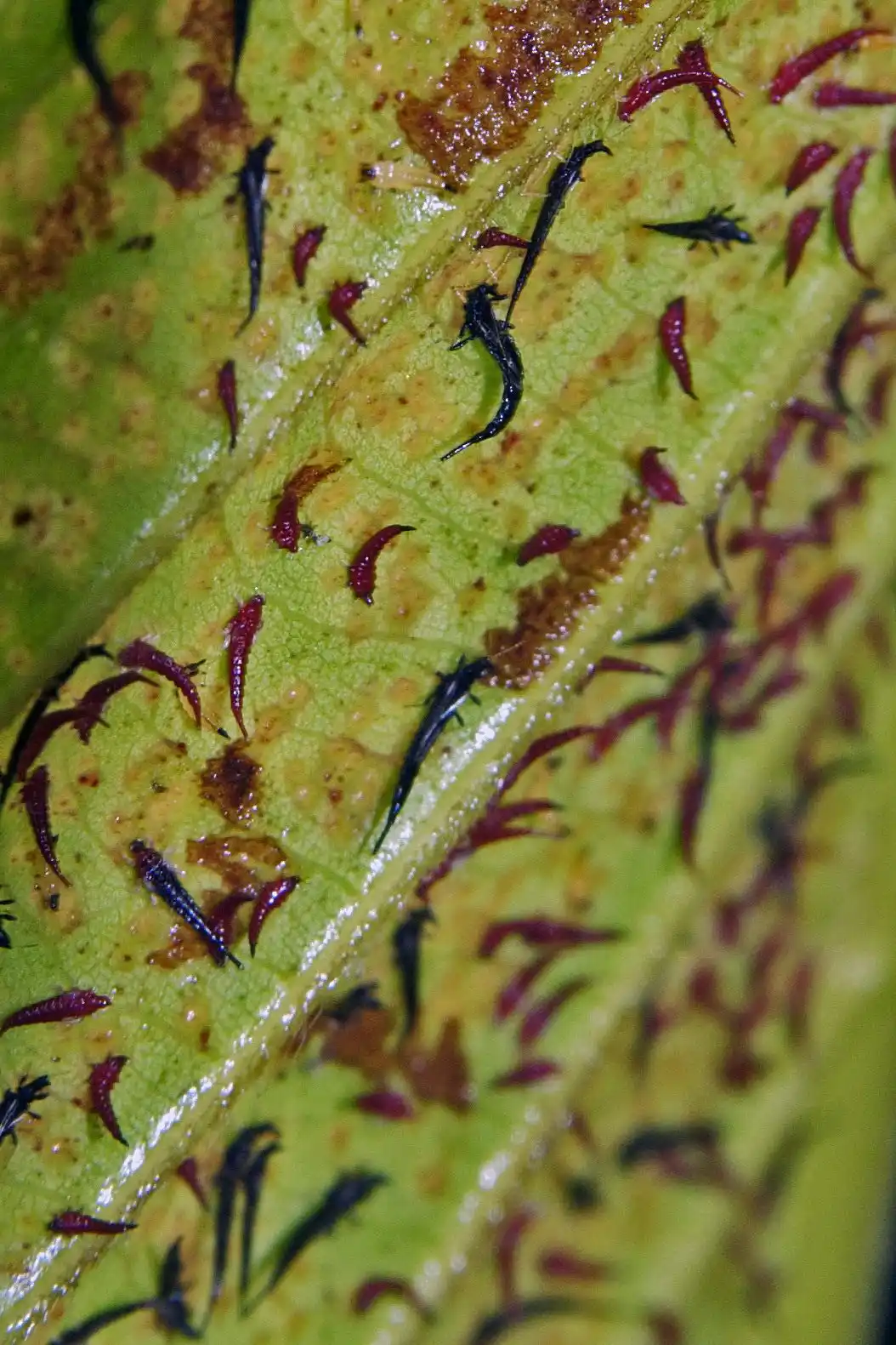 Не той шкідник, що на зріст великий, а той, що ненаситний. Так говорять у народі про трипси. Непомітні неозброєним оком, дорослі особини висмоктують сік, залишаючи на понівеченому листі рясні чорні точки екскрементів. Первинні ознаки ушкодження рослин – побілення листових платівок капусти. Пізніше листя буріє і, засихаючи, опадає. Трипси ушкоджують близько 400 видів рослин, діючи особливо активно у посушливий період. На ділянках постійно зволожених вони практично не шкодять. У природних умовах трипси можуть зимувати у вигляді всіх стадій розвитку та з настанням теплої сухої погоди починають активне пересування та заселення рослин. Для більш ефективного знищення шкідника необхідна одночасна обробка сухих ділянок ґрунту та рослин. Заражений ґрунт обробляють з ранньої весни до пізньої осені через 2-3 тижні.