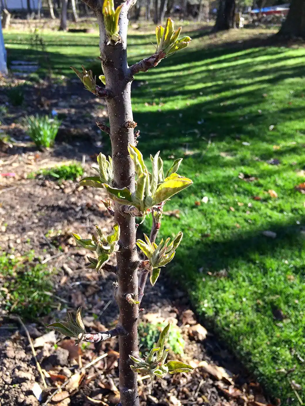 - Огляньте щеплення. Враховуючи крихкість щепи та щепи, щеплення може бути пошкоджене. Зверніть увагу на підщепу. Для колоноподібних яблунь використовують 2 види підщеп Парадизку Білоруську (ПБ-4) для південних регіонів і Малюк Будаковського для середньої смуги . Від інших видів підщеп вони відрізняються кольором кори: у ПБ-4 зазвичай світло-зелений майже салатовий з жовтуватим відтінком, у другого фіолетово-червоний. Інші підщепи не забезпечать карликовості колоноподібних яблунь та інших біологічних особливостей колон.