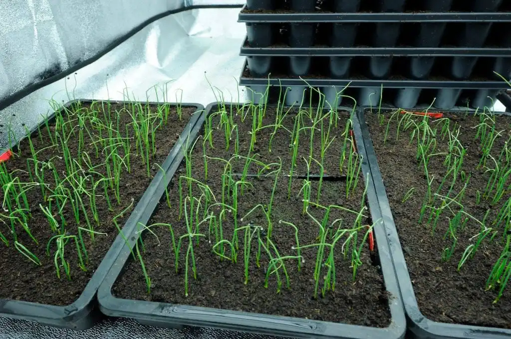 Глибина загортання насіння 1,5 см. Посіви слід тримати за нормальної температури 20-25 град. З появою сходів цибулі посівні ємності переносять у більш прохолодне місце (14-17 град.), але освітленість має бути високою. За період вирощування розсади рекомендується проводити два підживлення рослин мінеральним азотним добривом з інтервалом між підживленнями на два тижні.