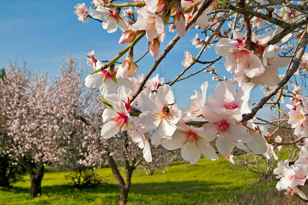 Цвісти і плодоносити може в будь-яких умовах, аби був удосталь сонячний колір, тому зустріти мигдаль можна і в сухих степах, і на кам'янистих укосах. Зацвітає мигдаль найпершим, сповіщаючи про наближення весни. Квітучий мигдаль - це надзвичайно красиве видовище. Він весь одягається в прекрасне біло-рожеве вбрання. Його дивовижні квіти покривають і ствол, і гілки. Тонкий аромат мигдалевих квітів нагадує аромат троянд.