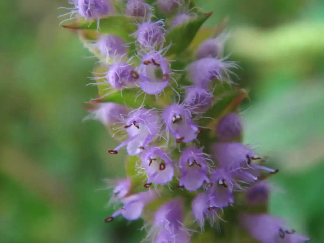 Однорічна рослина висотою до 100 см і більше. Стебло прямостояче, гіллясте, розсіяно опушене. Листя 1,5-10 см завдовжки, 1-3,5 см завширшки, яйцевидно-еліптичні, до основи звужені в довгий, тонкий, опушений черешок, городчато-пилчасті. Квітки зібрані в густе колосоподібне одностороннє суцвіття 2-6 см довжиною, 1 см шириною. Чашечка 1,5-2 мм завдовжки, яйцеподібна, залізиста, густо пухнаста. Віночок ліловий або фіолетовий, 3-4 мм довжиною, зовні короткоопушений. Горішки 1-1,5 мм завдовжки, темно-бурі, яйцеподібні.