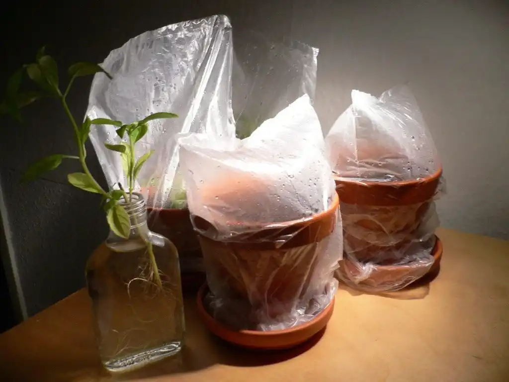 Воду міняю через 3 дні, а для кращого вкорінення тричі на день обприскую листя стевії водою або 1%-ним розчином цукру. При температурі 18...25 °C коріння відростає через тиждень. А коли вони досягають 5-8 см (через два тижні), висаджую стевію на грядку в теплицю або горщики і тиждень тримаю розсаду під плівкою. До вкорінення живців ґрунт має бути вологим.