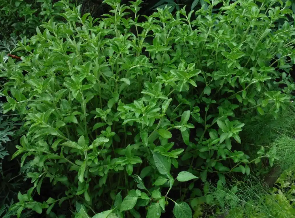 Листя стевії солодше цукру в 300 разів і містить понад 50 корисних для організму людини речовин: мінеральні солі (кальцій, магній, калій, фосфор, цинк, залізо, кобальт, марганець); вітаміни P, A, E, C; бета-каротин, амінокислоти, ефірні олії, пектини.
