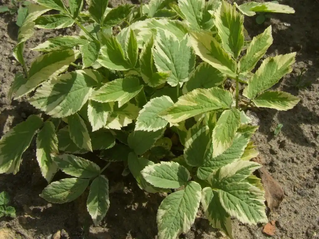 Це відноситься до пурпурнолистого подорожника, живучки повзучої з червоно-фіолетовим або біло-зеленим листям, садової лебеді з пурпурним листям, ряболистої будрі плющевидной з повзучими пагонами, що укорінюються, ряболистої снисті. Потрібен постійний контроль і над жовтцем повзучим з махровими квіточками.
