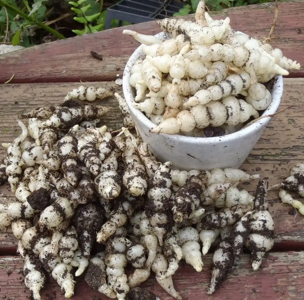 Необхідно лише пам'ятати, що копають стахіс не раніше за другу декаду жовтня. Більш ранній збір не дає нормального врожаю, бульби виходять дрібними, тому що основний їх зростання відбувається у вересні.