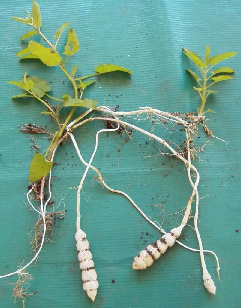 Кущики стахісу, висотою до 60 см, трохи схожі на м'яту, але їх коріння на глибині від 5 до 15 см забезпечене великою кількістю бульбочок, схожих на білі довгасті черепашки; їх маса 4-6, іноді до 10 г. Вони і йдуть у їжу.