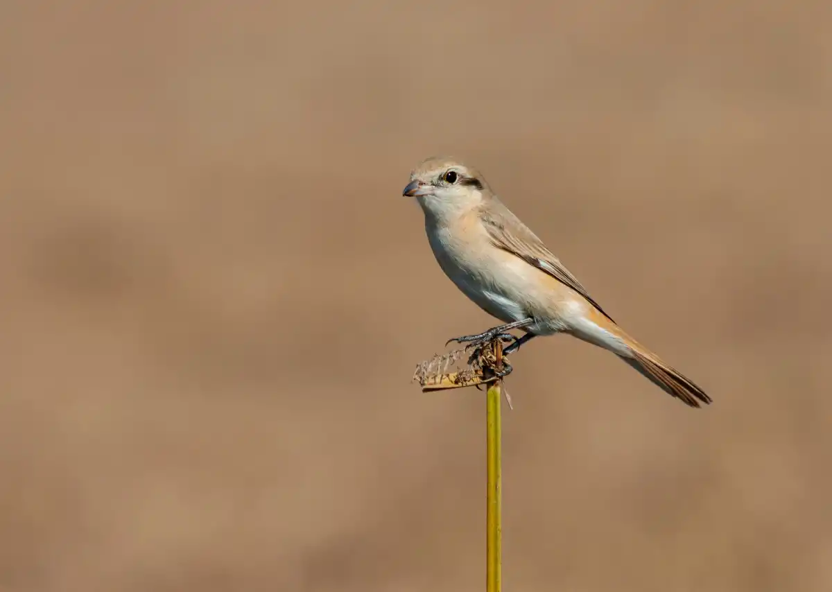 Буланий жулан (Lanius isabellinus) навіть трохи дрібніші за попередні, мешкає на півдні Сибіру та Алтаї, зиму проводить в Африці чи Індії.