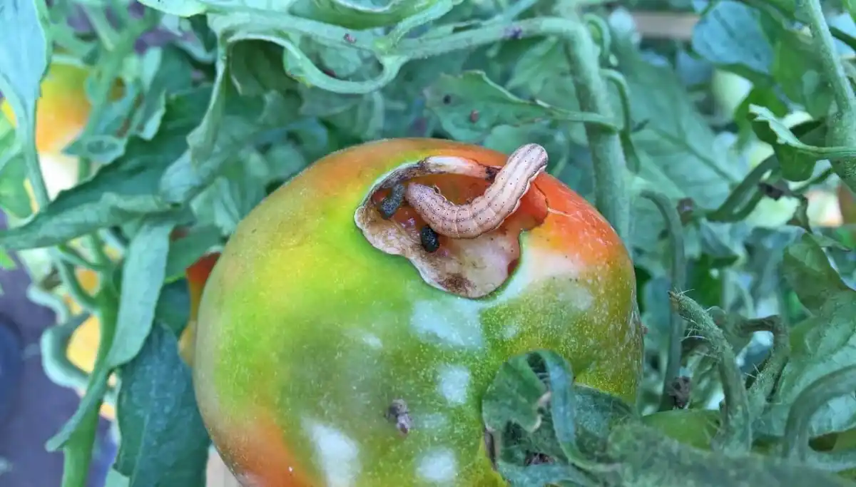 Молоді личинки також проникають у основу стебла (тютюн) бутони, зерна (кукурудза) та плоди (томати).