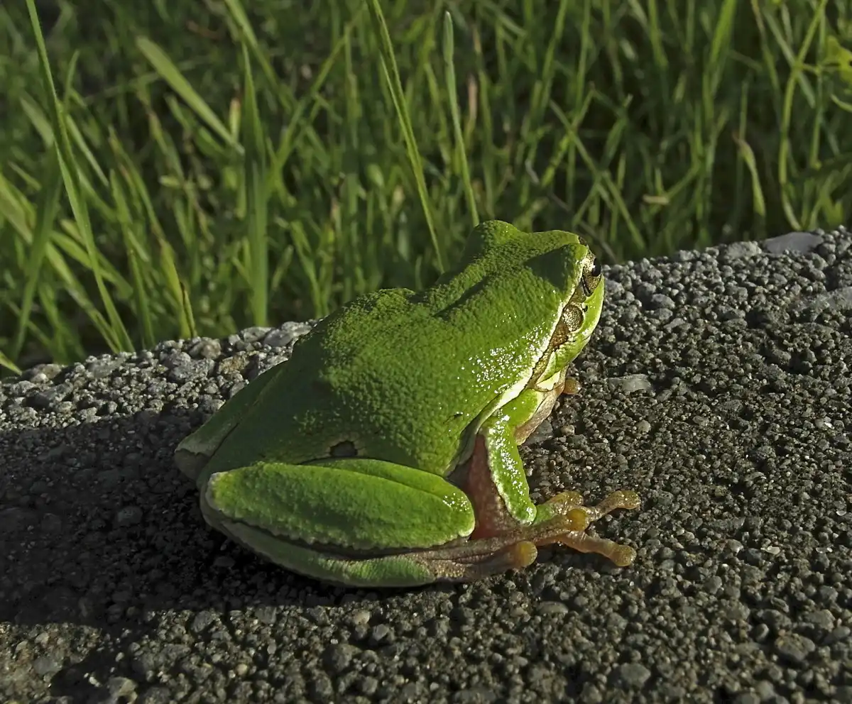 Одна з найзручніших – трав'яна жаба. Невелика, 6-10 см, оливкового або коричневого кольору з плямами. Голос у неї тихий, ніби навіть муркотить. Найбільш активна у сутінках та вночі. У сиру та похмуру погоду – протягом дня. Водойма їй потрібна майже виключно для розмноження.