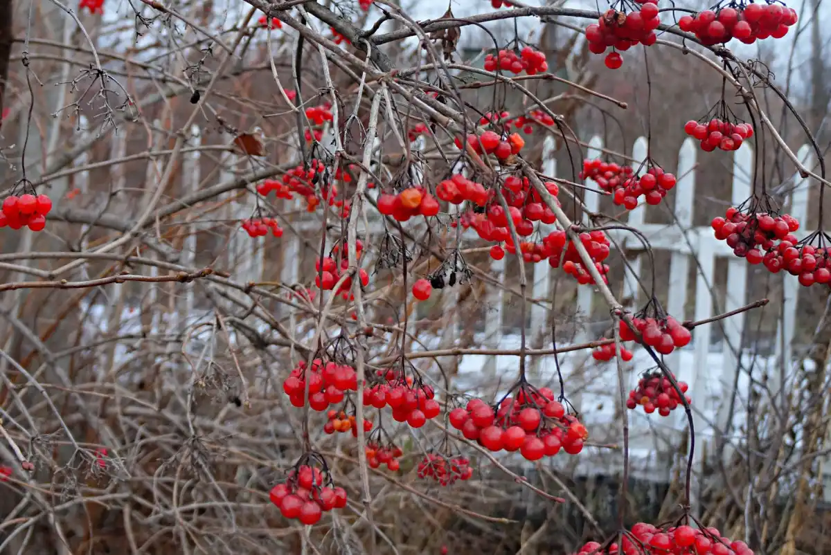 Наприклад, черемха маака, шипшина та калина дають птахам зимові плоди. Ягоди ірги та чорноплідної горобини пропонують ягоди пізньої весни. Чорниця та шовковиця – джерело плодів влітку. Декоративні жимолості та яблуні завершують осінній фруктовий сезон. Червоні плоди зазвичай найулюбленіші птахами.