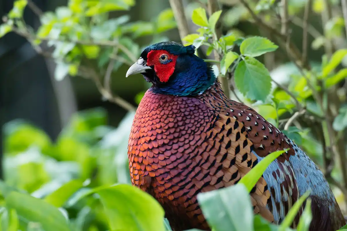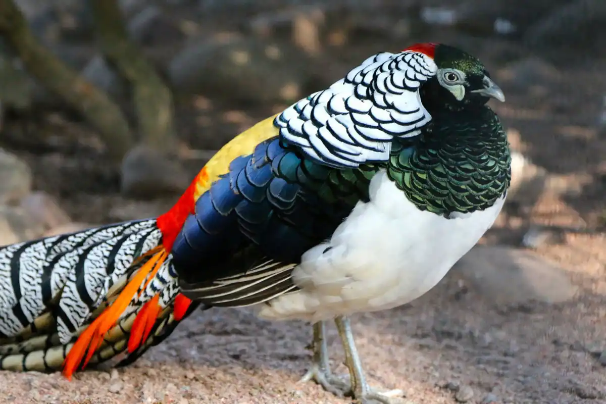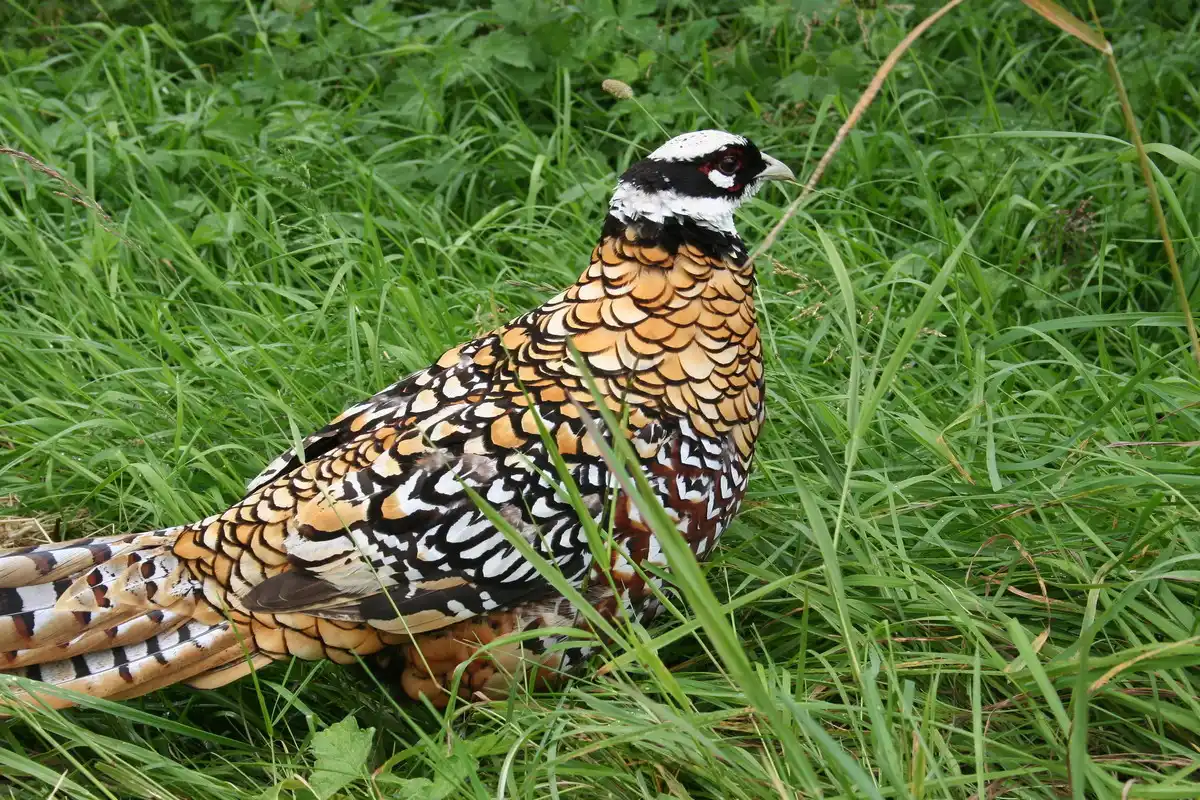 Королівський (строкатий китайський) фазан у дикому вигляді мешкає в гористій частині північного Китаю. У самця дуже красиве блискуче оперення, що нагадує дивовижні риб'ячі лусочки. Тіменна частина голови і шийка білого кольору, очі прикриває розбійницька чорна маска, груди покривають золотисті пір'їни з чорною окантовкою, хвіст сріблястого кольору в чорну поперечну смужку. Довжина хвоста до 1,5 м. Самочки пофарбовані непомітно. В Україні в країні рідкісний, там є об'єктом трофейного полювання.