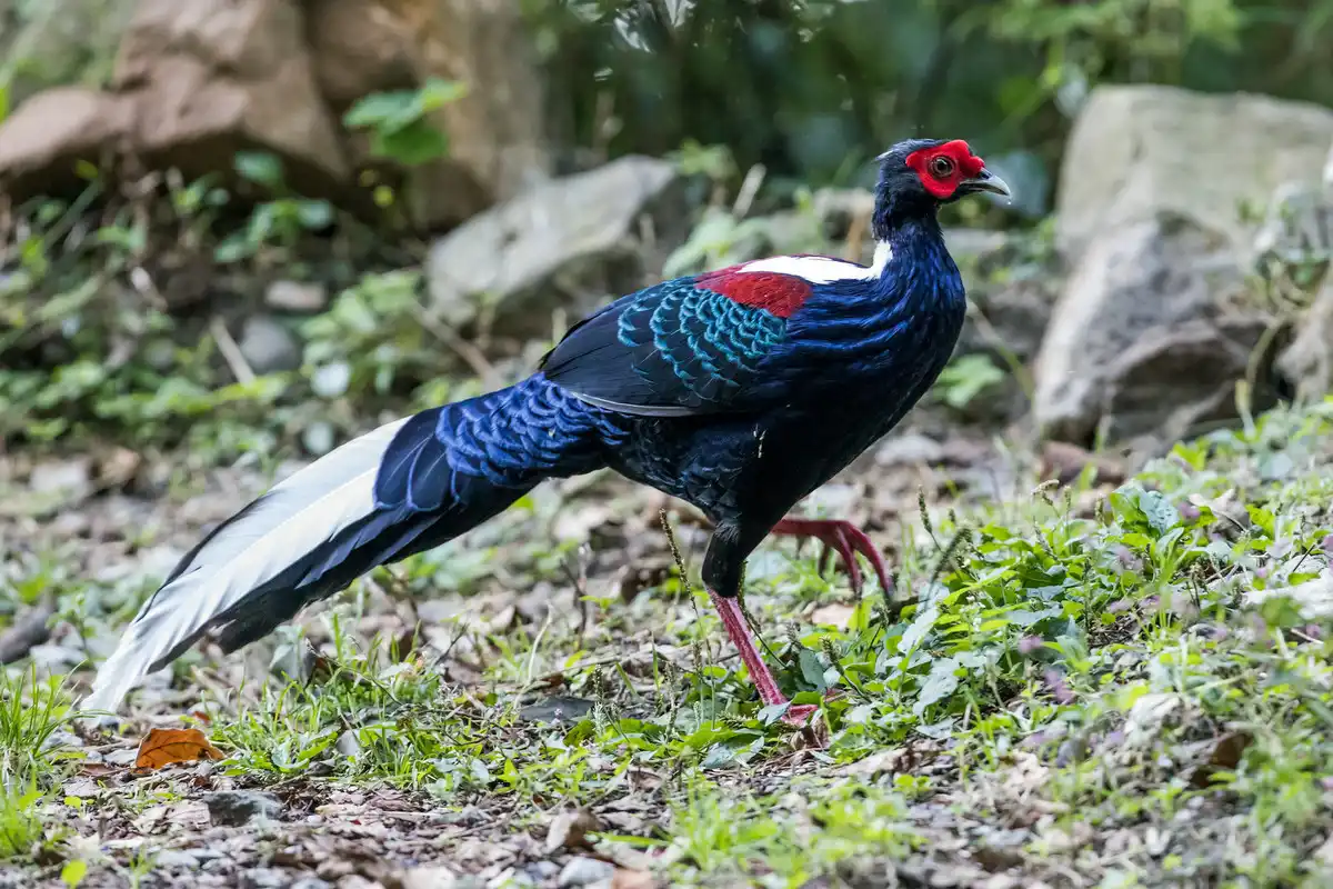 Яскраво пофарбований самець пальво або тайванського фазана (блакитний або формозький фазан) у шлюбний період красується синім оперенням грудей, спинної частини та крил, бордовими плечима та білою плямою на спині. Лицьова частина - червона, білий хохол з пір'я на голові. Довжина тіла самця - 80 см, з них на хвіст припадає 50 см. Вага самця близько 1 кг. Цей вид фазанів легко приручається. Кладка яєць до 6 шт., період насиджування до 28 днів.