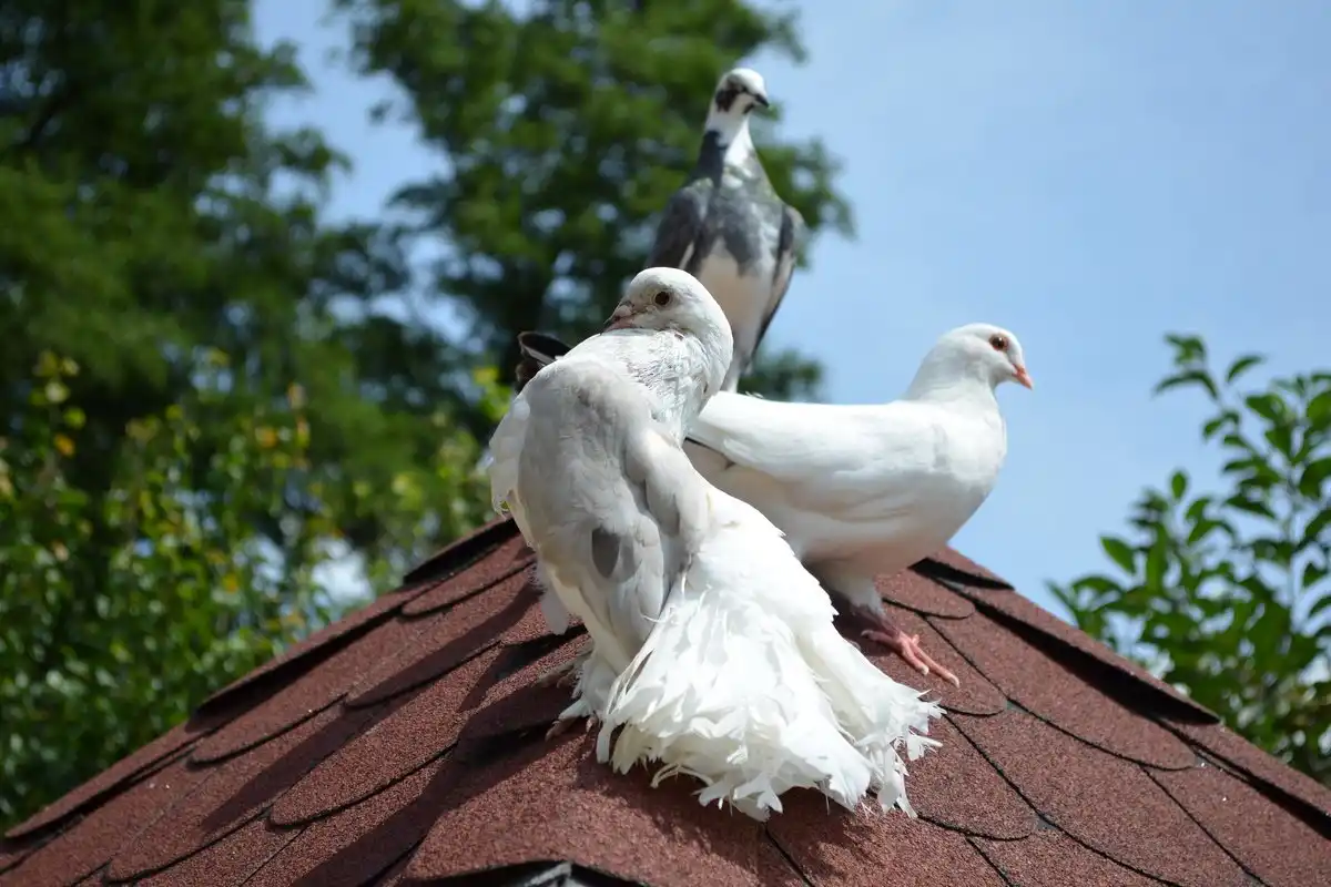 У домашніх голубів самки відкладають два яйця білого кольору, період насиджування становить 18 днів. Насиджують по черзі самка і самець.
