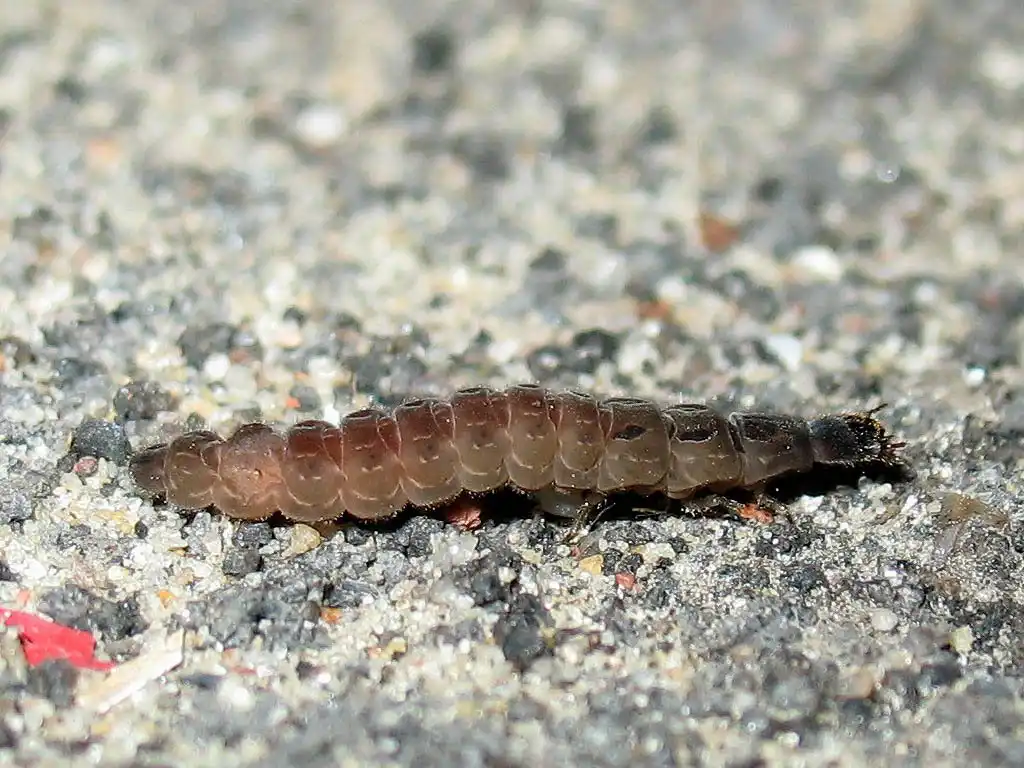 Навесні можна знайти личинок жука-пожежника, які пересуваються в купах рослинного сміття або пухкої землі в саду. Іноді через зовнішність личинки порівнюють із маленькими крокодильчиками, хоча вони нагадують гусениць, звужених з боку голови. Зазвичай вони темного кольору та покриті помітними густими волосками, іноді можуть мати брудно-оранжеві відмічені.