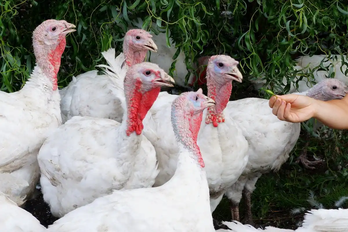 Годування у дорослих індиків починається відразу після пробудження зі сніданку (зазвичай це запарений з вечора корм). А протягом дня дідусь підсипає птахам корм регулярно у міру поїдання. При цьому кожні дві години слід перевіряти, чи птиці не залишилися без їжі.