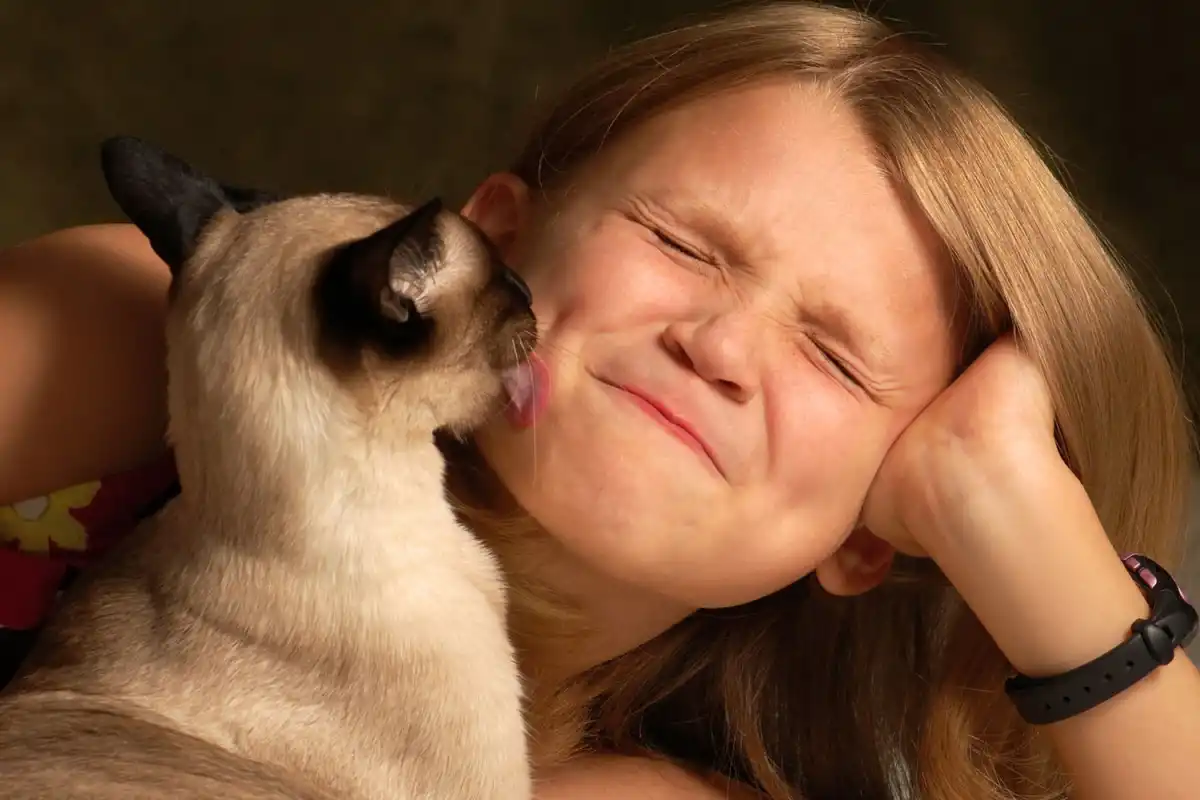 6. Кішка облизує ваші вуха, обличчя та волосся
