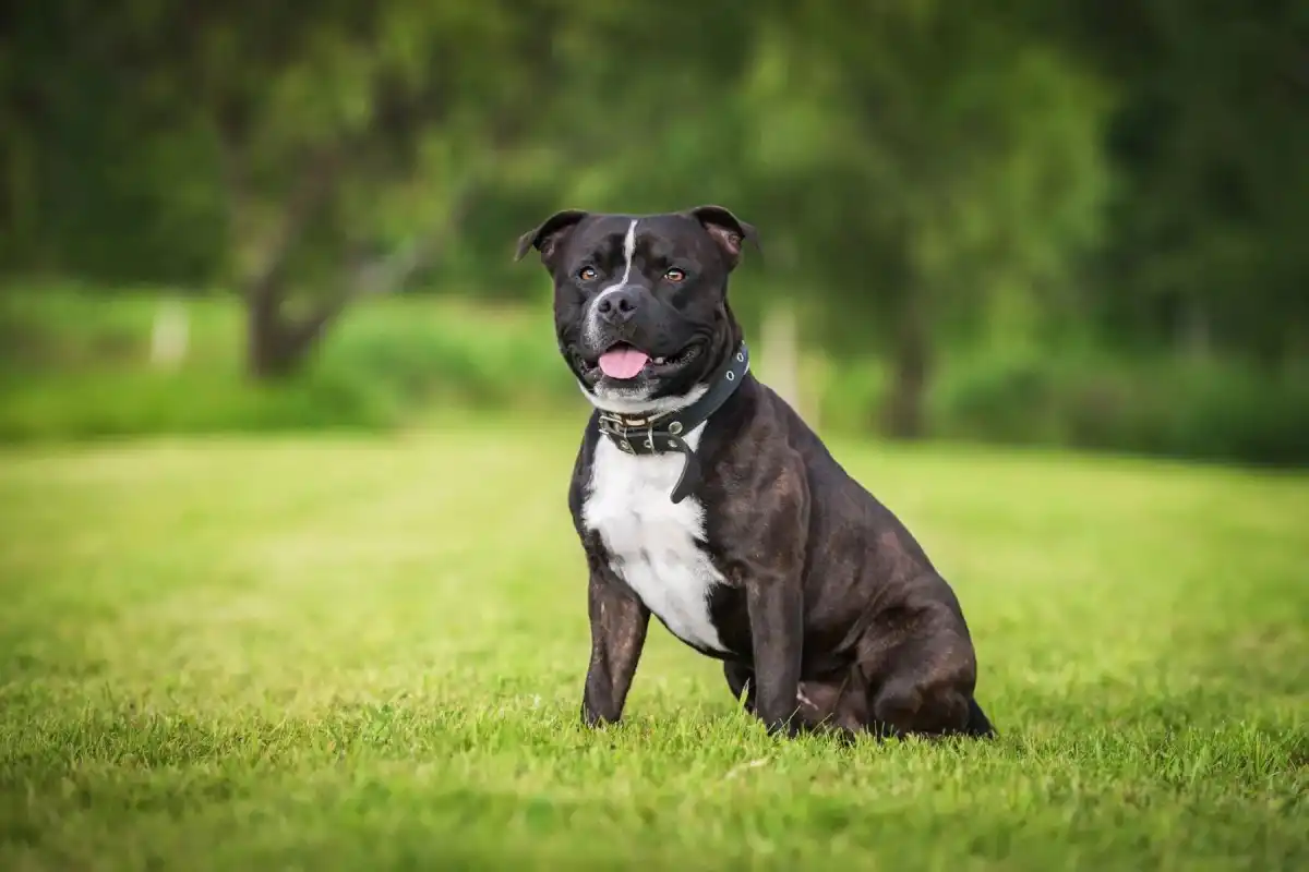 Останнє місце в нашому топі зайняв стаффордширський бультер'єр, результат схрещування англійського тер'єру та бульдогу. Це присадкуваті м'язисті собаки зростом 35-40 см і вагою 12-17 кг. Хоча спочатку порода використовувалася як бійцева, нині грає роль повноцінного компаньйона. Тим не менш, за небезпеки стаффордширський бультер'єр обов'язково заступиться за свого господаря і безстрашно битиметься до останнього. Порода має високий больовий поріг, відвагу і відданість своїй сім'ї. Вона добре показує себе як охоронець, але дуже погано як сторож.